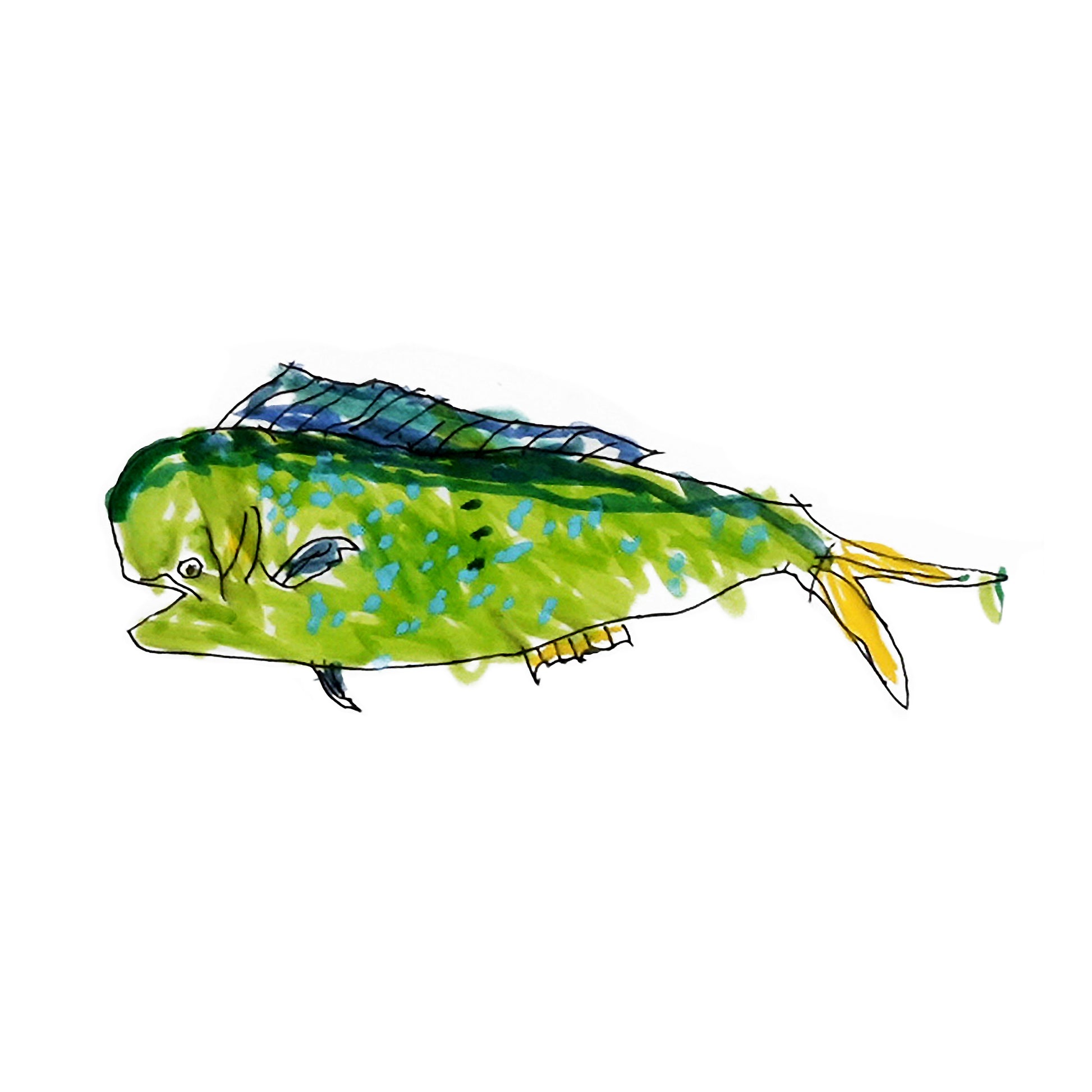 Try to name all the species: In this piece, we have a jaguar, sloth, scarlet macaw, poison frog, coral snake, toucans, squirrel monkey, volcano hummingbird, blue morpho butterfly, hercules beetle, olive ridley turtle, mahi mahi, white lipped peccary, tapir, strawberry poison dart frog, yellow naped parrot, golfo dulce poison dart frog, leaf cutter ant, eyelash viper, and a totally made up animal he calls Bob the Gecko!